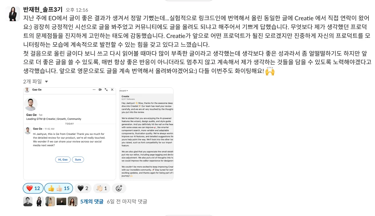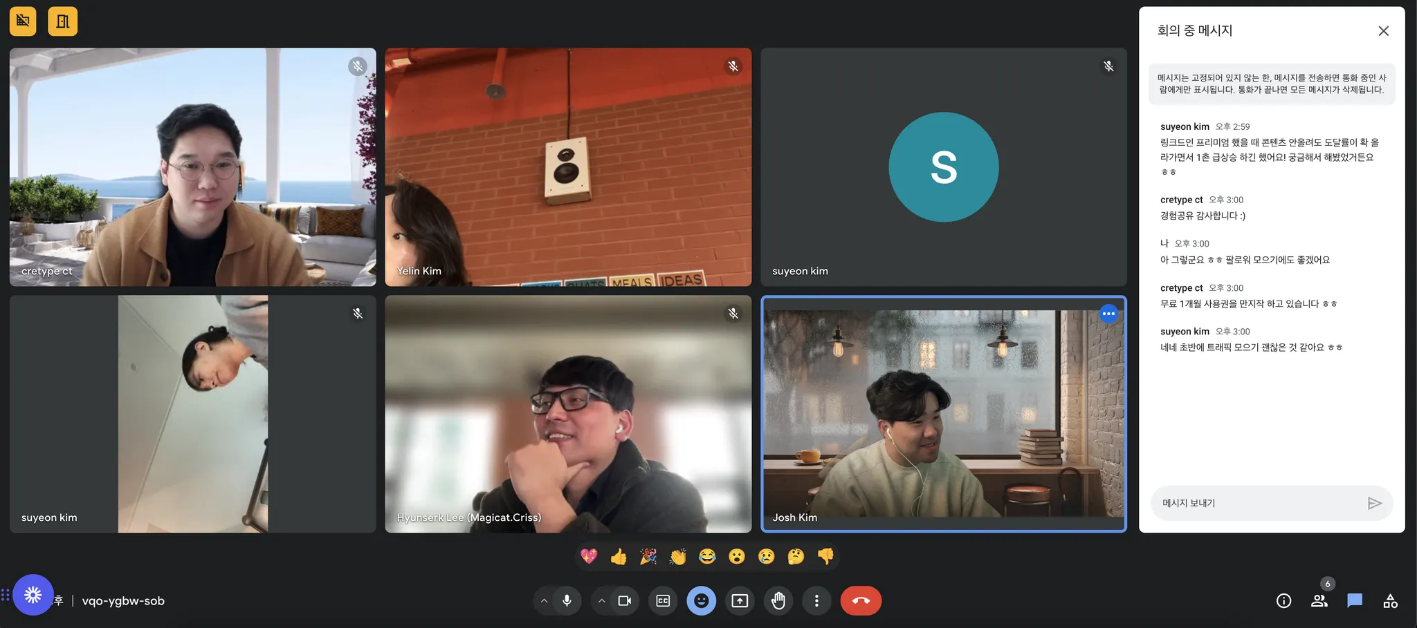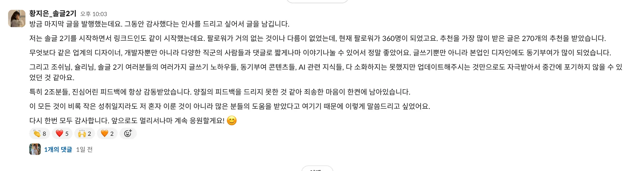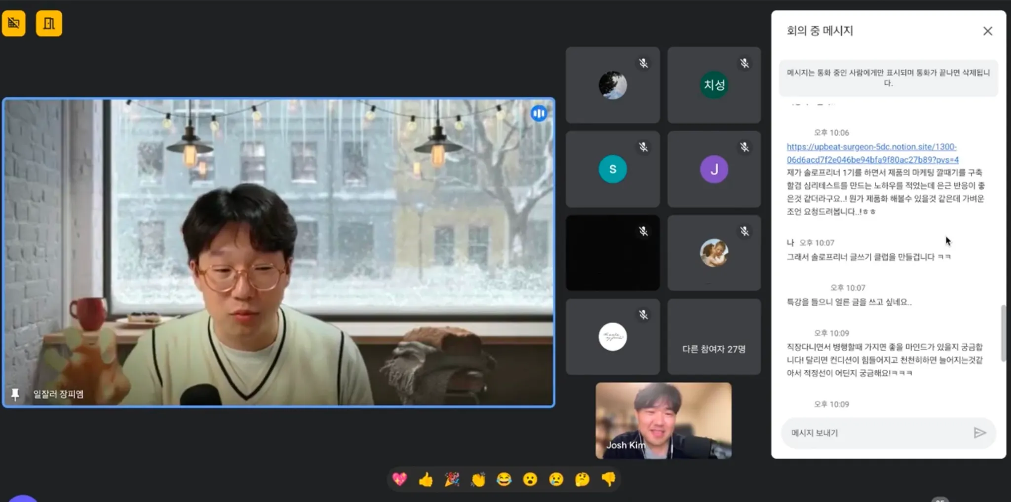 조쉬님, mdm님 등 전문가분들의 냉철한 피드백과 동료들의 응원 속에서 제 세계관이 실시간으로 넓어지는 것을 느꼈습니다.