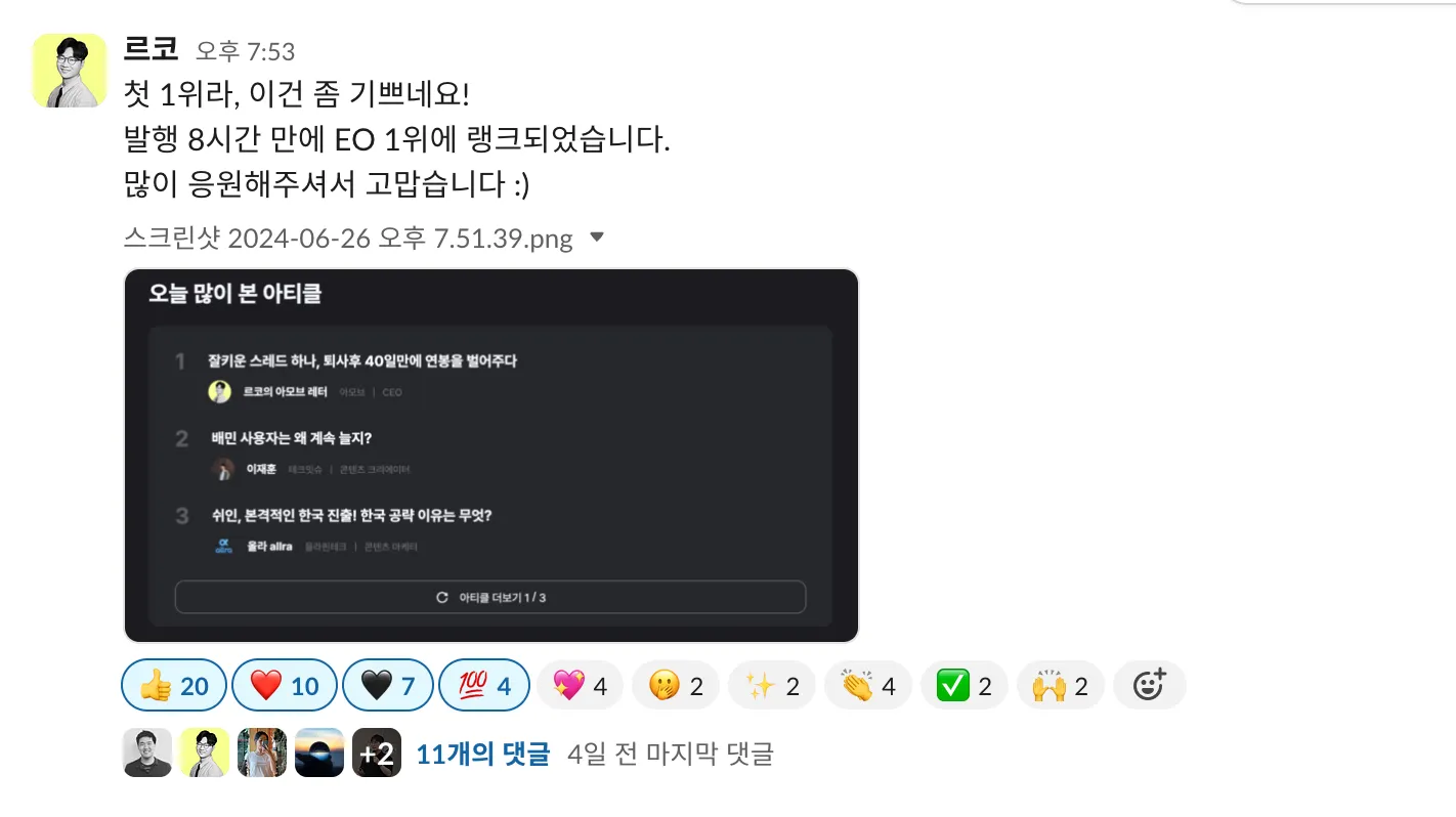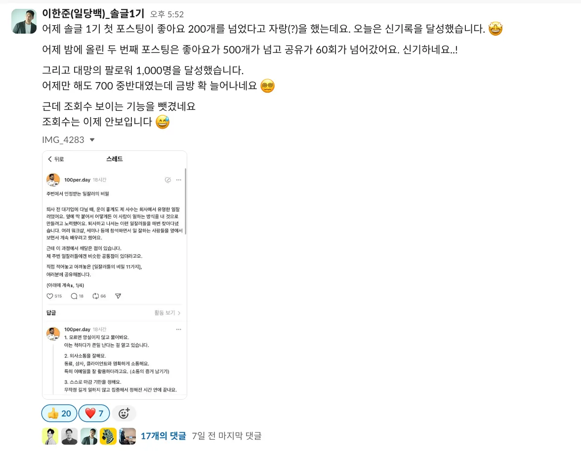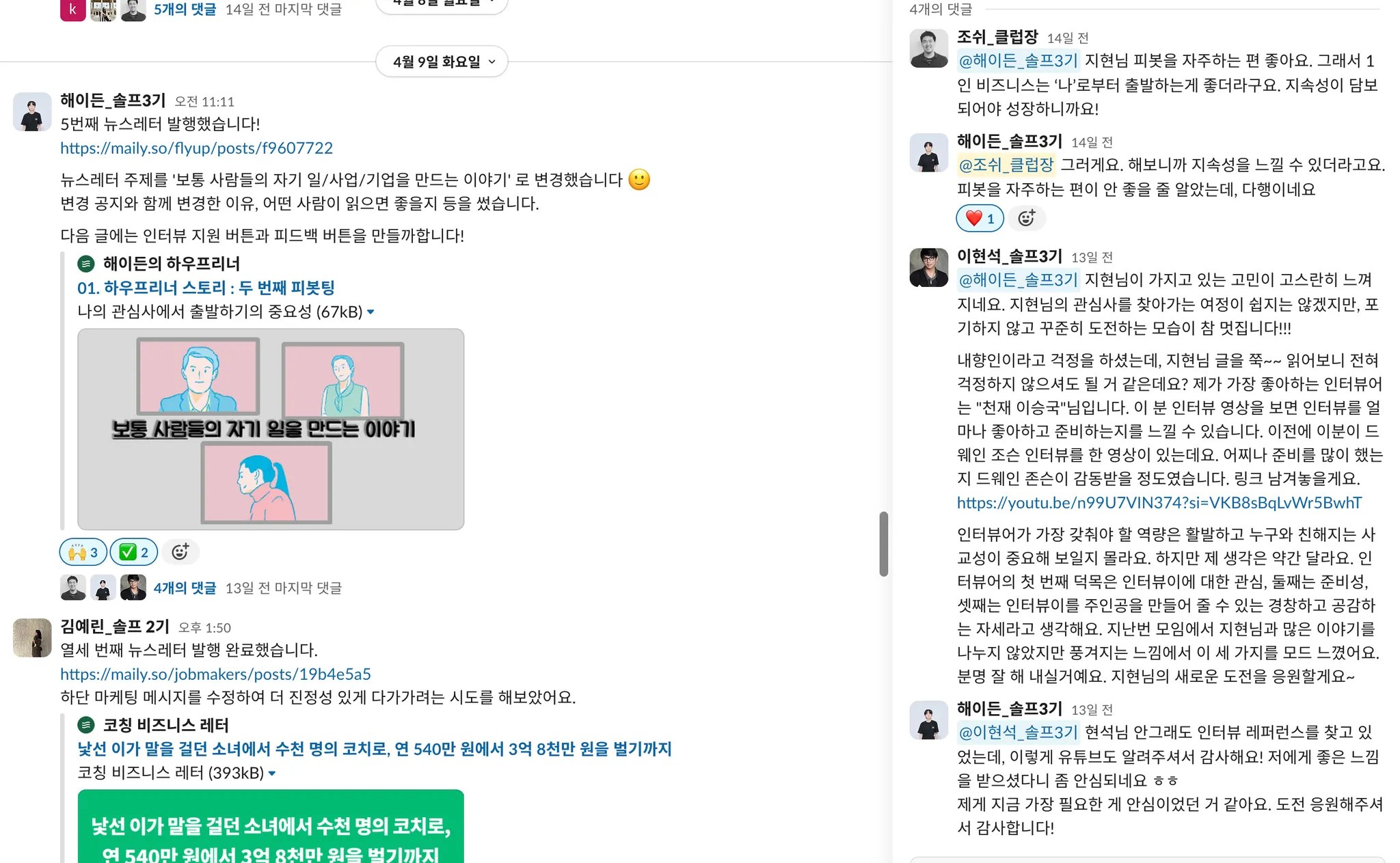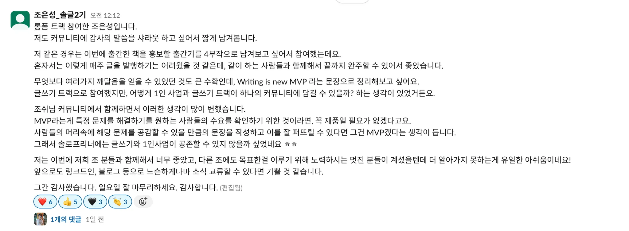 조쉬님, mdm님 등 전문가분들의 냉철한 피드백과 동료들의 응원 속에서 제 세계관이 실시간으로 넓어지는 것을 느꼈습니다.