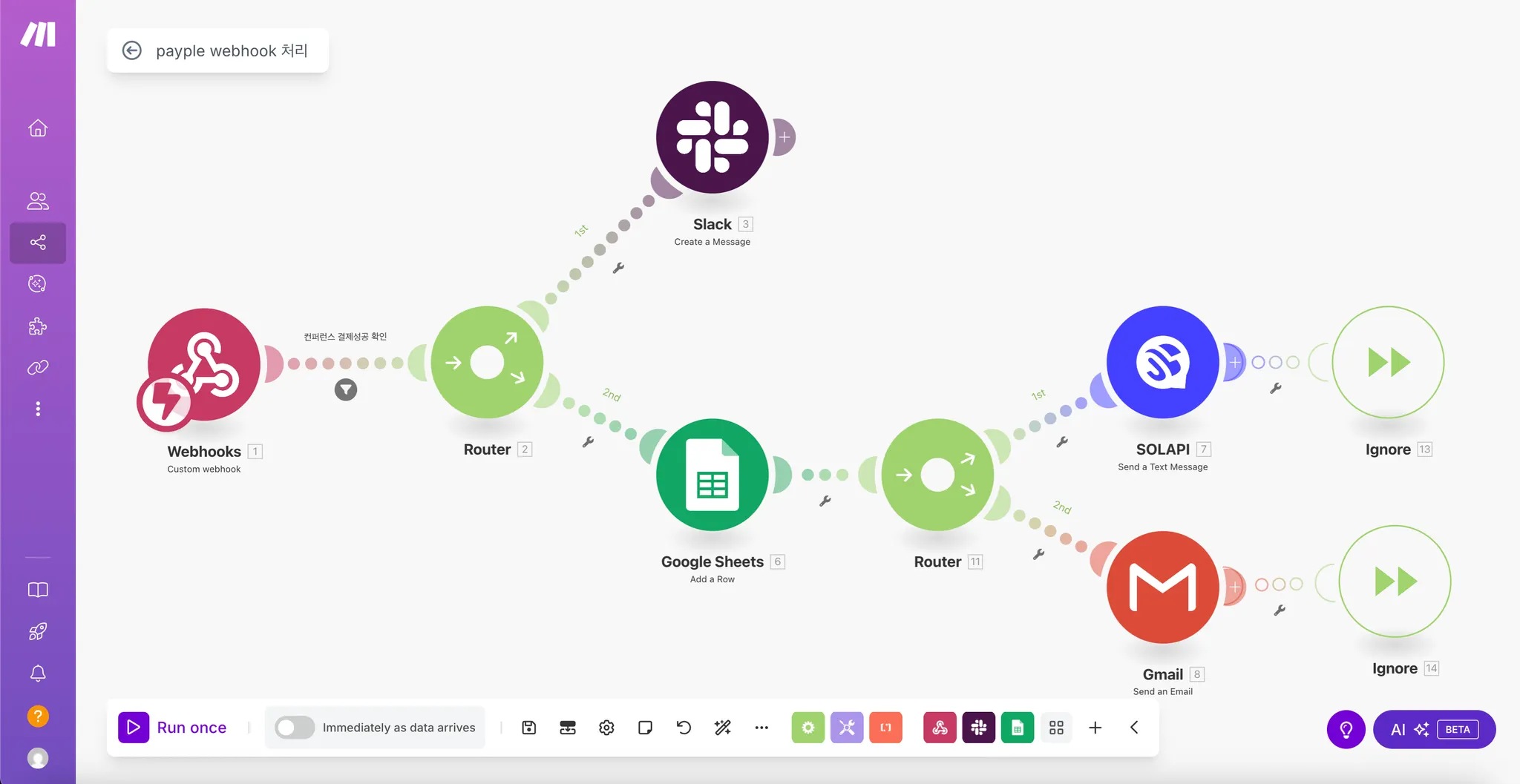 랜딩페이지 홍보 → Make로 결제 및 문자 자동화